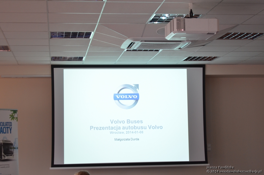 W dniu dzisiejszym (08.01.2014 r.) wrocławskie MPK oficjalnie przejęło do użytkowania od firmy Volvo autobus hybrydowy. Będzie to pierwszy, miejmy nadzieję że nie jedyny, autobus hybrydowy, który będzie jeździł na liniach regularnych obsługiwanych przez MPK Wrocław. Konferencję prasową, która odbyła się na terenie Zakładu Autobusowego nr IX przy ulicy Obornickiej, poprowadziła pani Małgorzata Durda – Dyrektor ds. Sprzedaży Autobusów w firmie Volvo. Trzeba przyznać że Pani odpowiadała bardzo chętnie i kompetentnie na pytania. Na tę konferencję zaproszeni byli również przedstawiciele miasta Wrocławia, którzy niestety nie dotarli. Szkoda bo padło wiele cennych informacji, które powinny być brane pod uwagę podczas planów związanych z komunikacją miejską.
