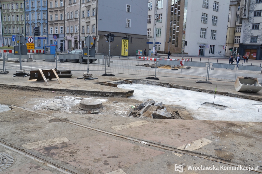 Rozjazdy w tym rejonie zostały zdemontowane i przygotowywana jest podbudowa pod nowe. Prace potrwają jeszcze 2 tygodnie.