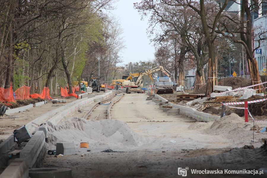 Większość prac skupia się obecnie w rejonie pl. Orląt Lwowskich. Asfaltowanie są fragmentów dróg i układane rozjazdy.