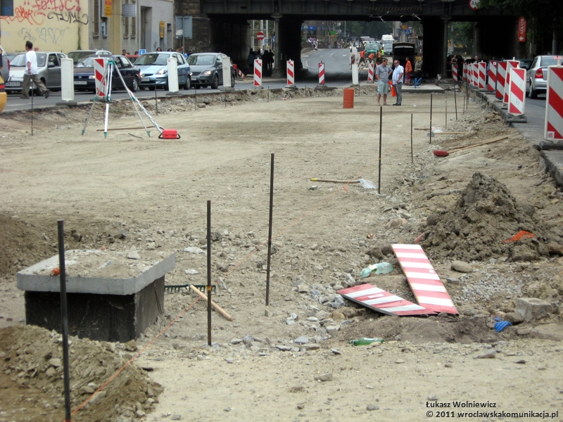 Na ulicy Legnickiej koło Dolmedu prace są finalizowane, a na skrzyżowaniu z ulicą Milenijną trwa przygotowanie torów do podłączenia zwrotnicy, która umożliwi przyłączenie szlaku prowadzącego na stadion na Maślicach.