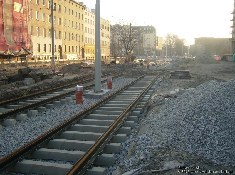 Byliśmy również na ul. Pułaskiego, gdzie układane jest nowe torowisko.