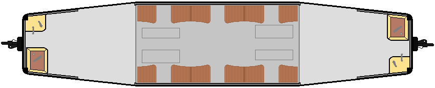 Tramwaj jest w stanie pomieścić 12 osób na miejscach siedzących, miejsc stojących jest 72. Poniżej można obejrzeć schemat wnętrza.